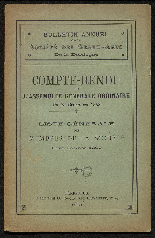 Compte-rendu de l'assemblée générale ordinaire du 23 décembre 1899.