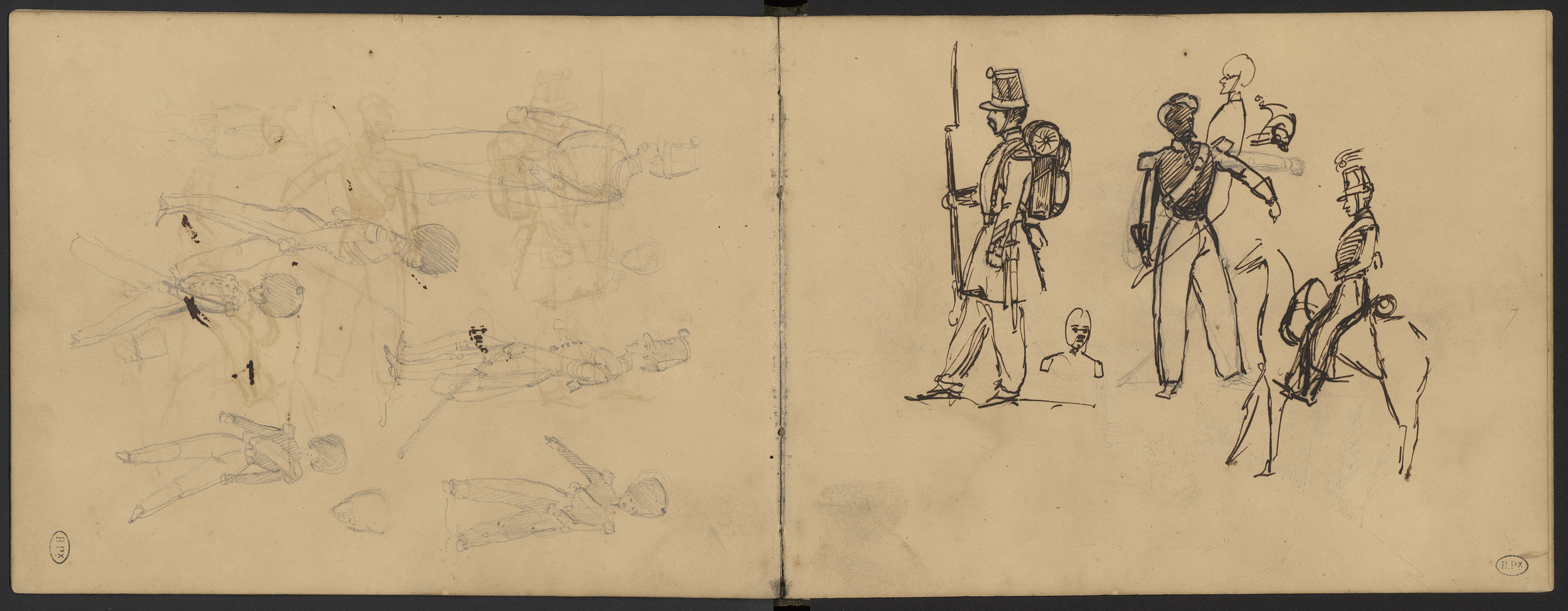- Études pour soldats à bonnets à poils caractéristique des grenadiers, « l'ourson » et casque shakos.
