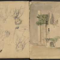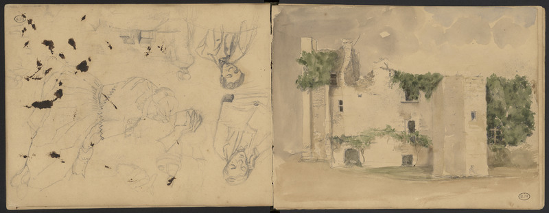 page précédente, personnages divers esquisse de bustes d'homme et de femmes.