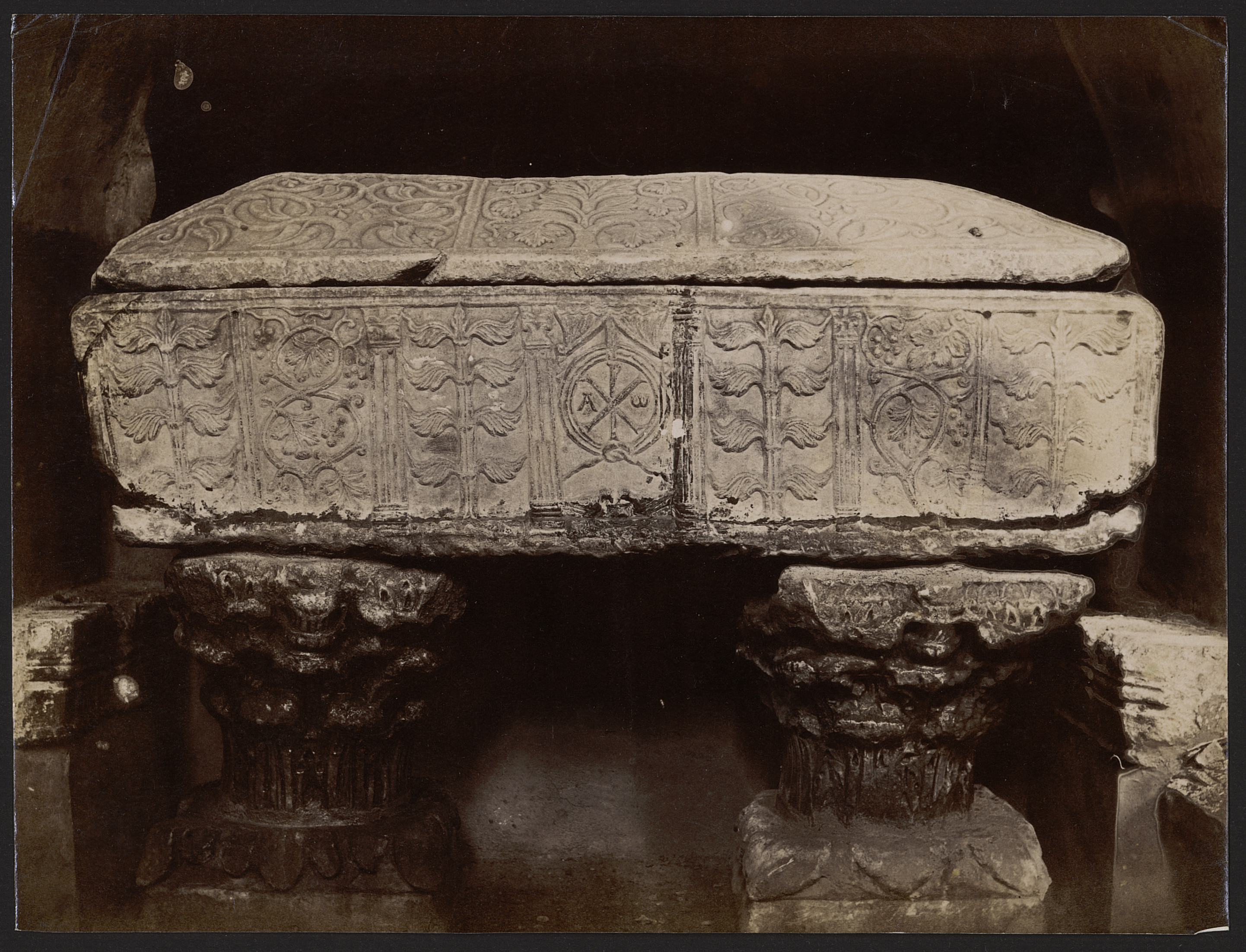 Photographie d'un sarcophage paléochrétien, épreuve albuminée