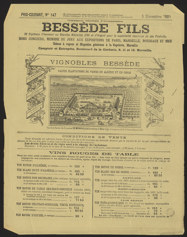 Publicité pour les vignobles Bessède