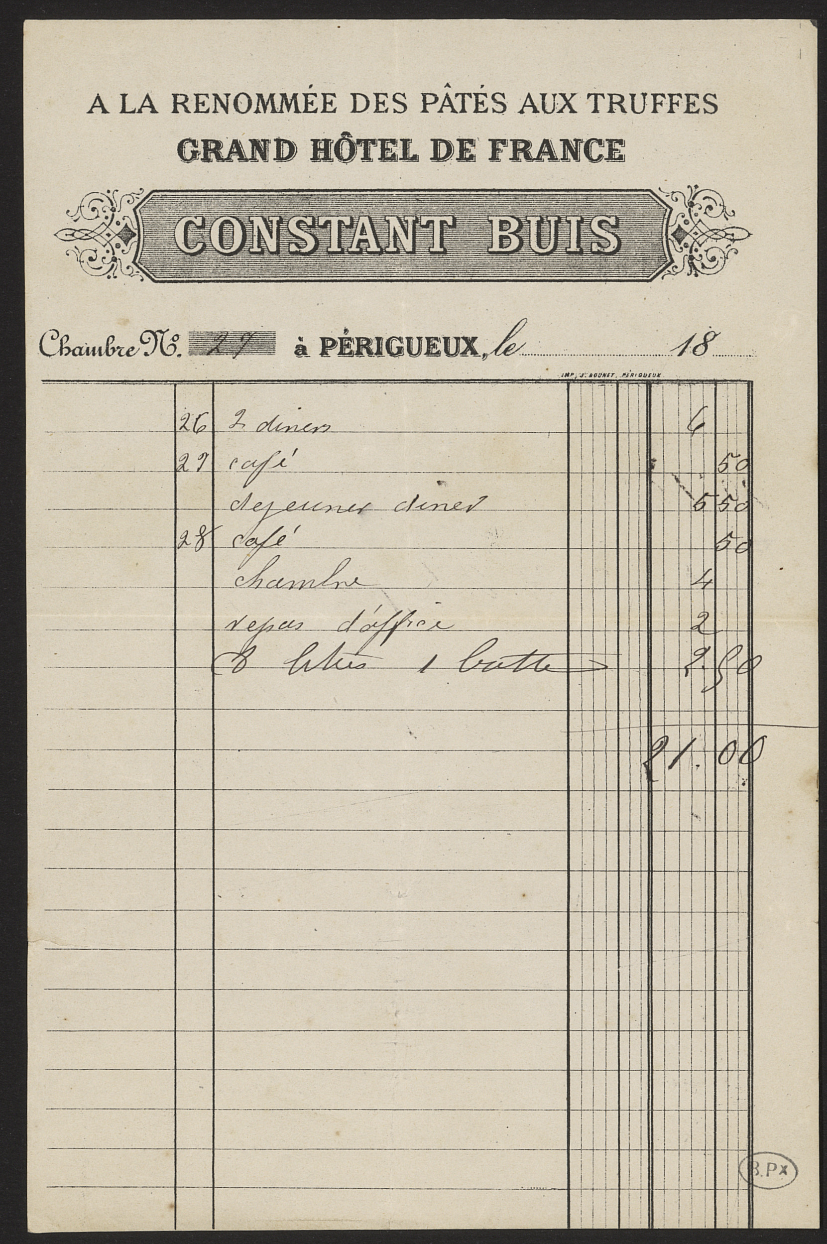 Facture d'hôtel