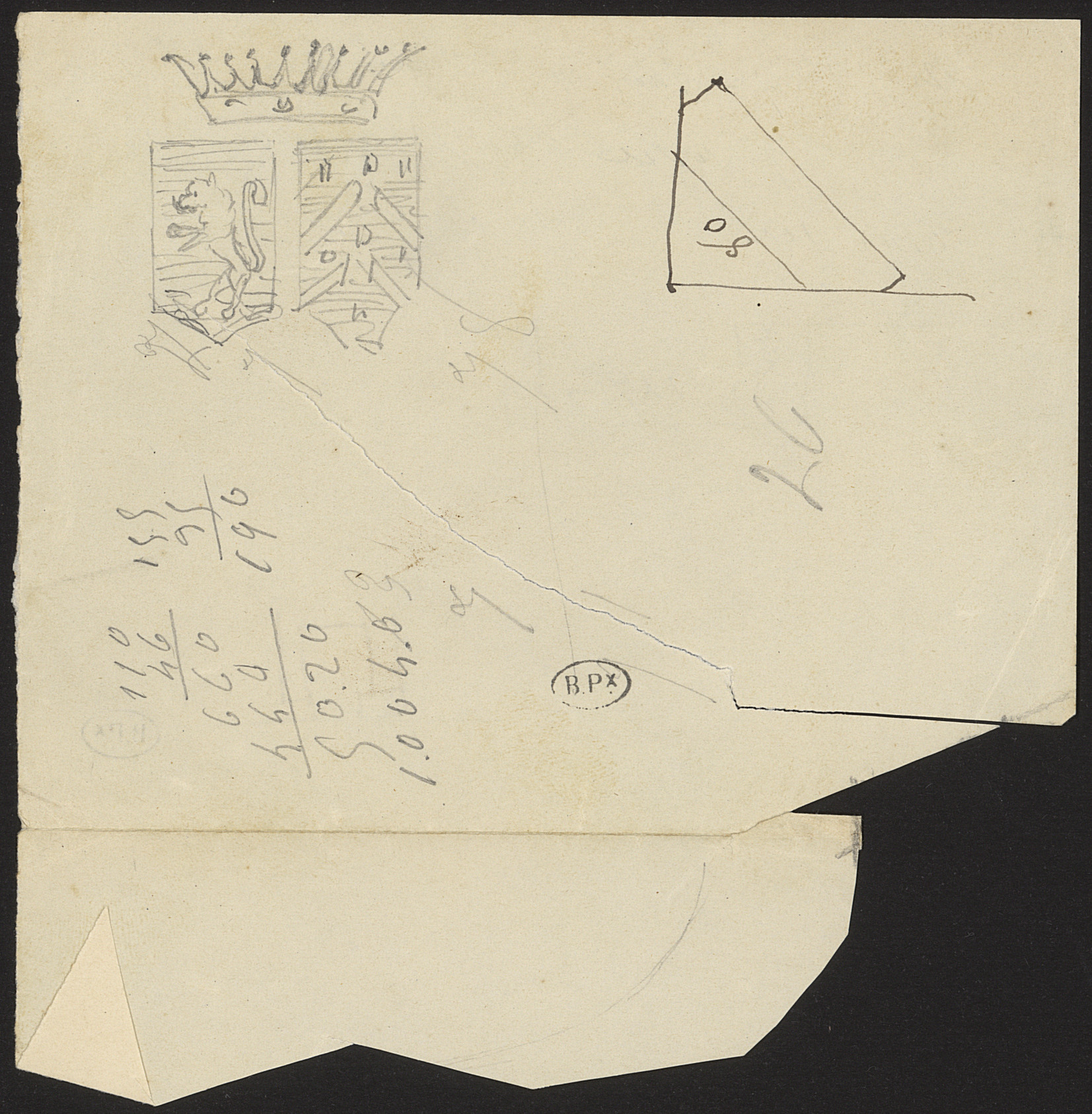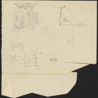 Verso du dessin précèdent avec chiffres et des armoiries
