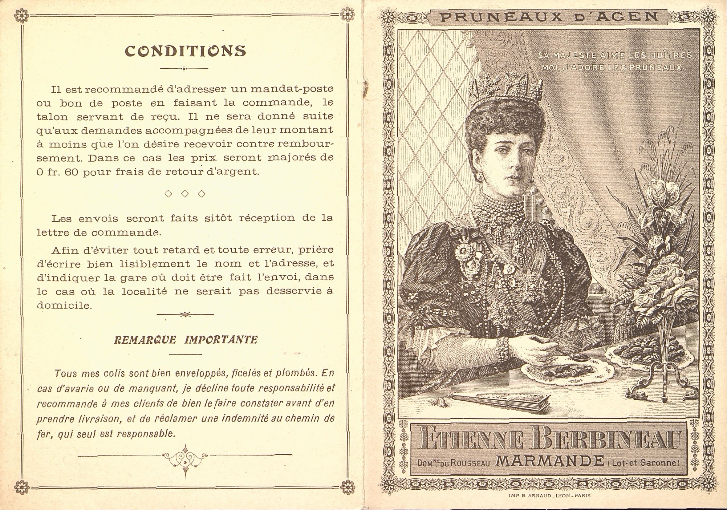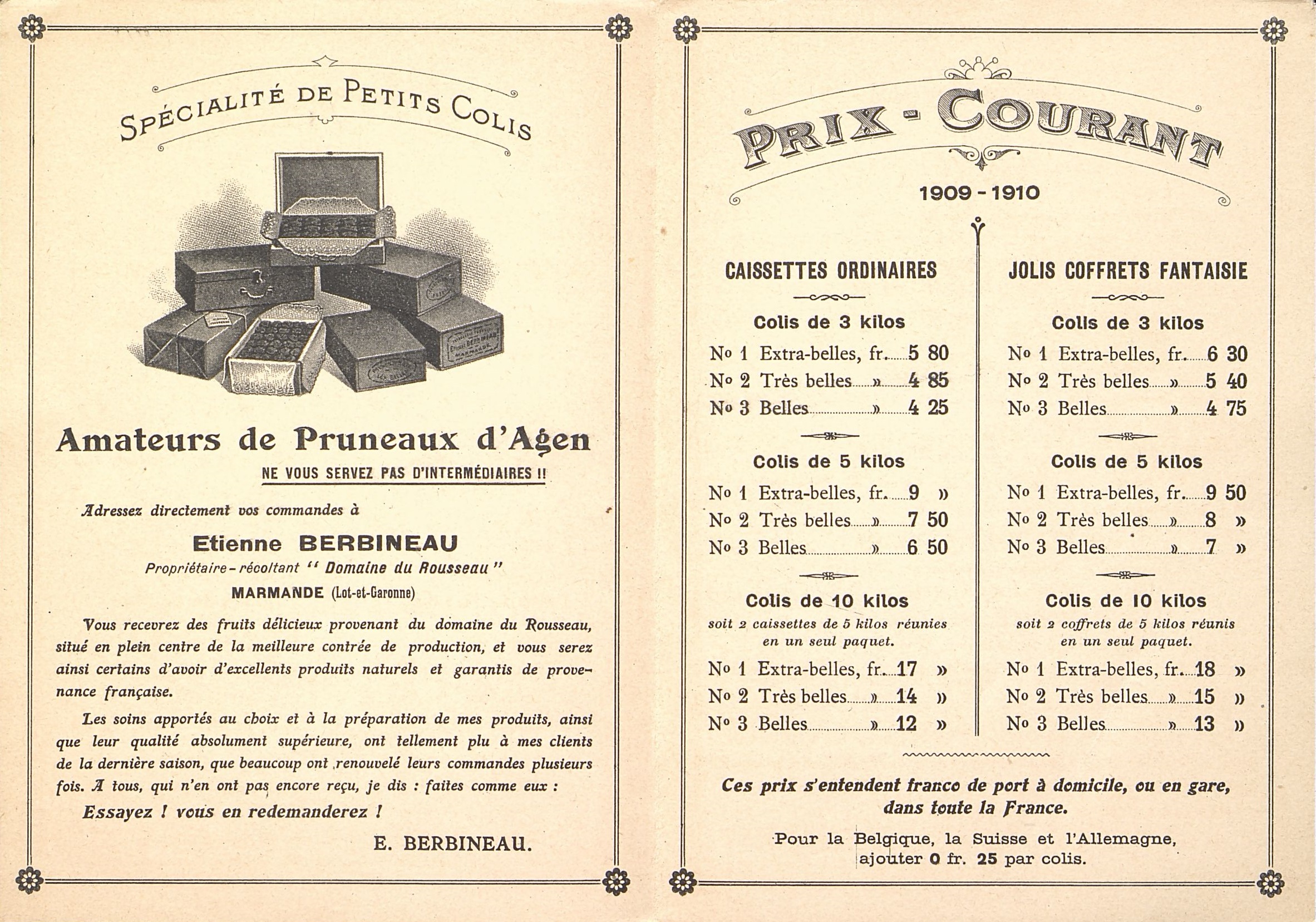 Catalogue commercial des pruneaux d'Agen, Etienne Barbineau.