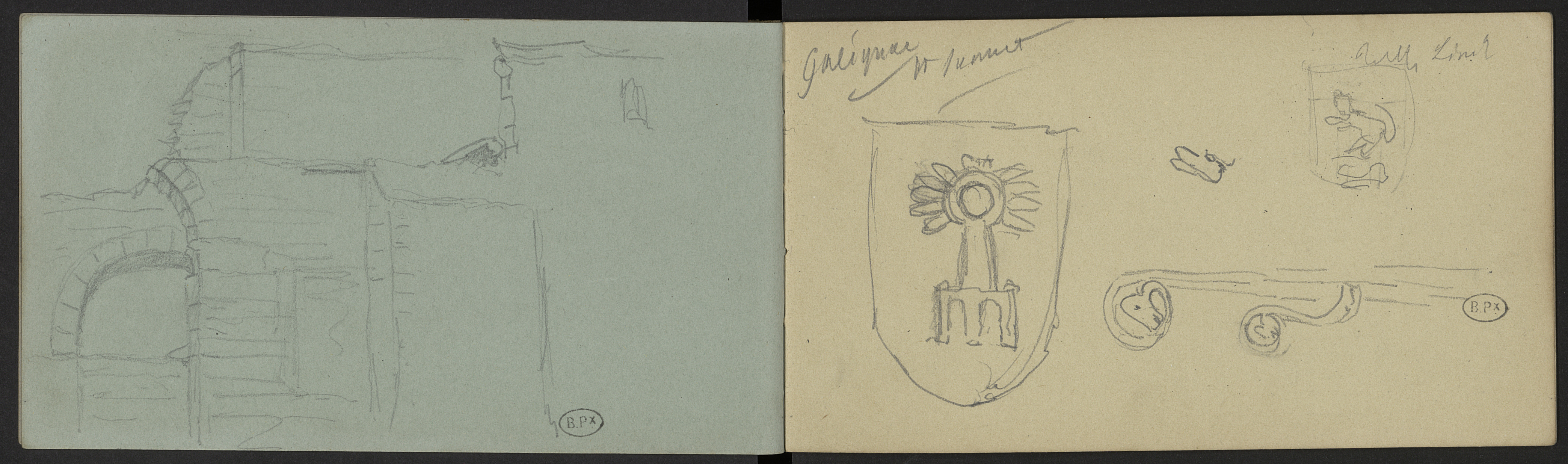 Deux pages de dessins peu reconnaissables, on lit : Golignac ou Salignac