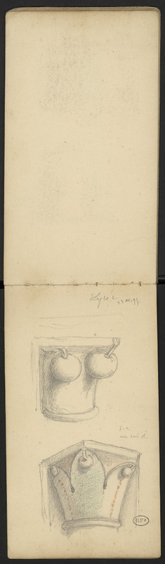 Deux chapiteaux portant des fruits pour décor, possiblement originaire du lycée de Cahors.