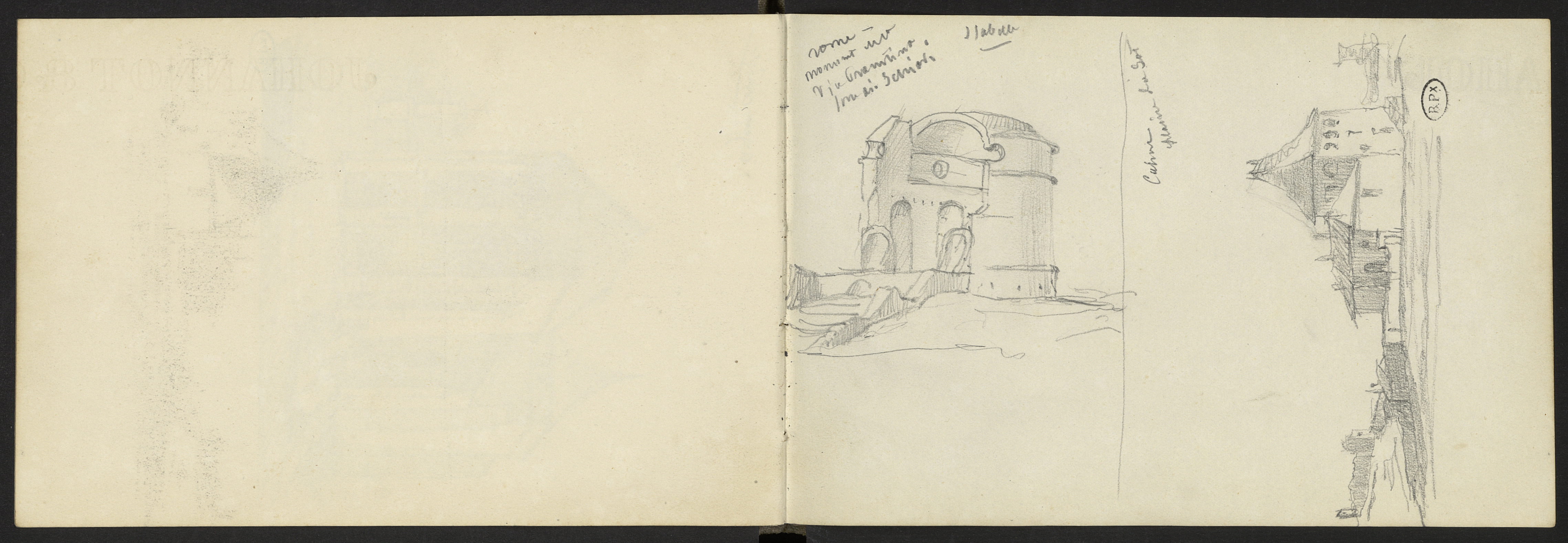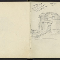 Deux ptits dessins ; l'un représentant Cahors, l'autre un monument antique à Rome