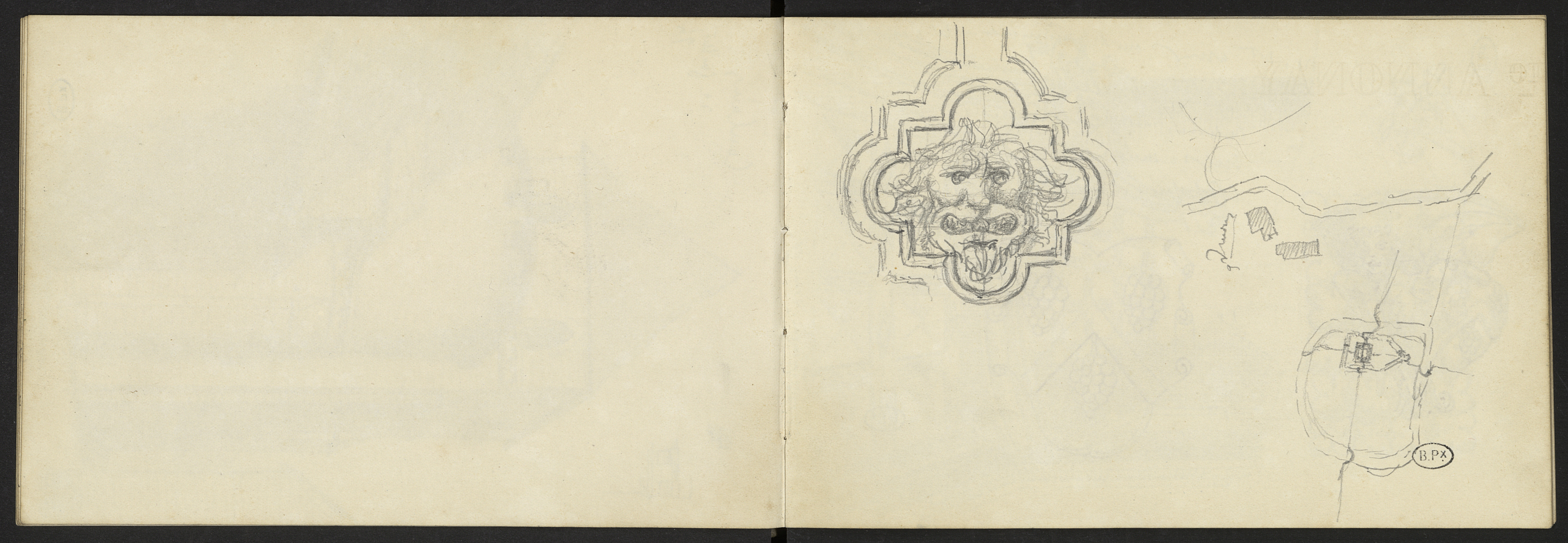 Sorte d'applique ou de heurtoir avec tête de lion et un plan au sol
