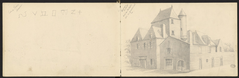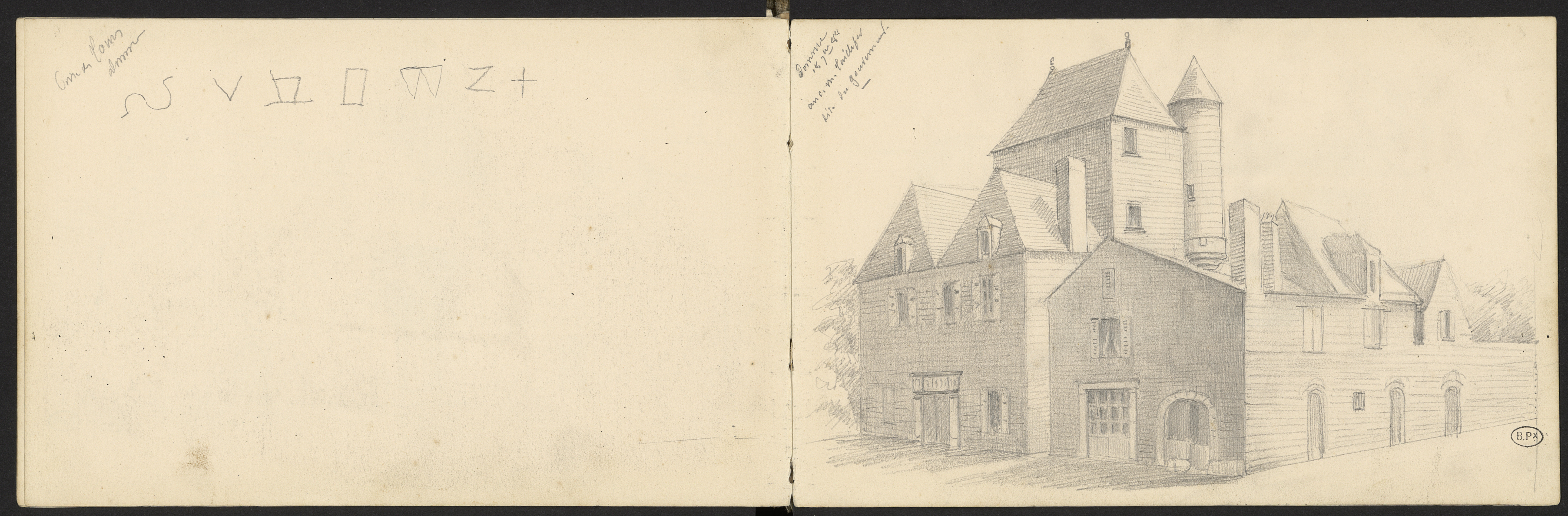 Page précédente, vagues croquis de lettres