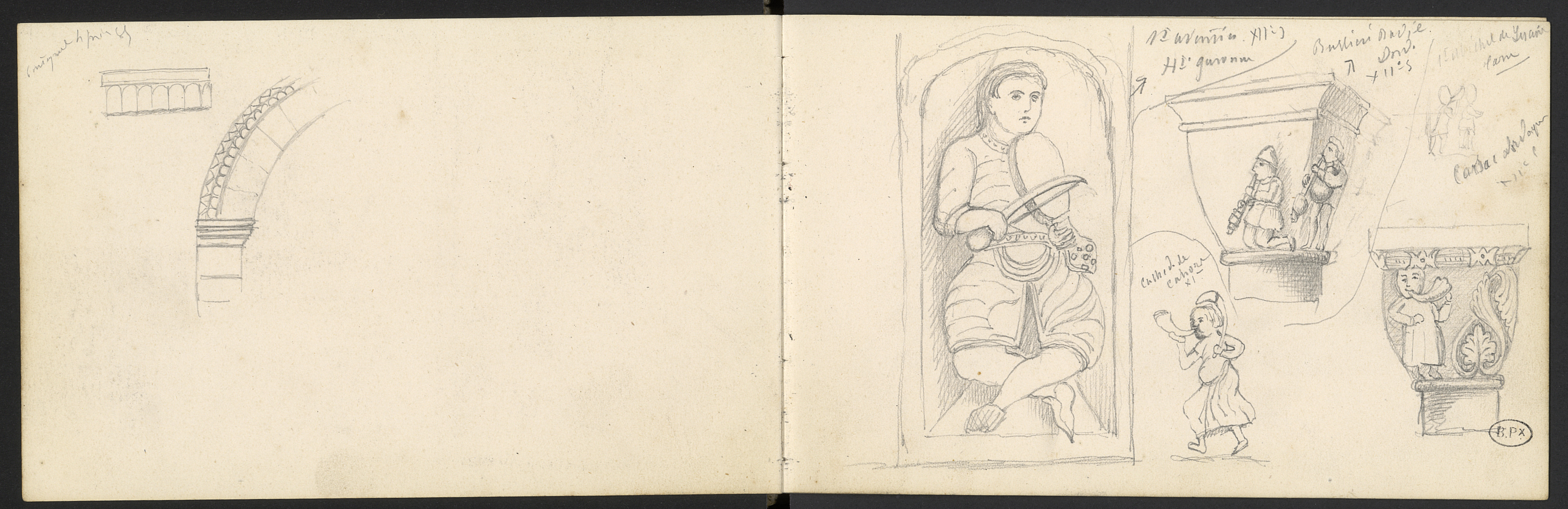 Diverses sculptures romanes repésentant des musiciens ; Haute-Garonne, Dordogne, Lot