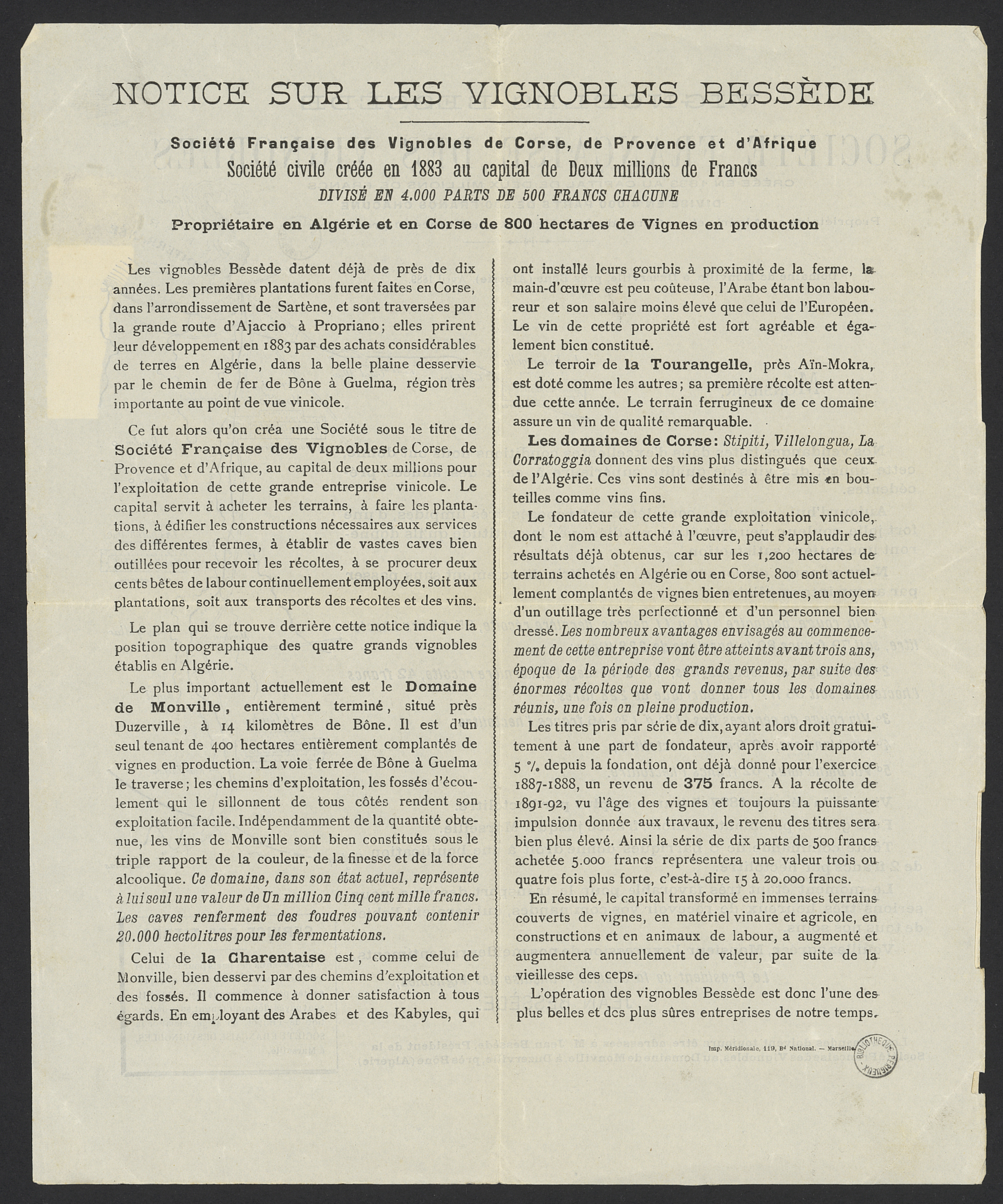 Notice sur les vignobles de la Bessède
