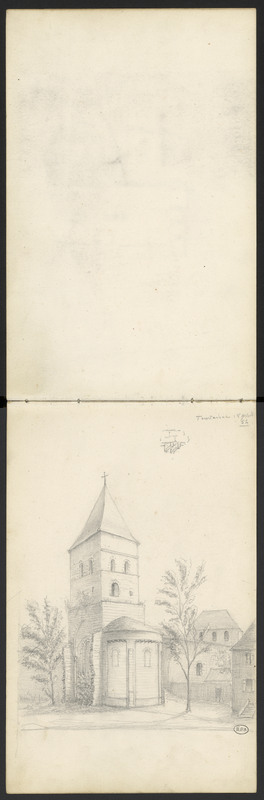 Église. Croquis d'un détail de corniche reposant sur deux corbeaux.