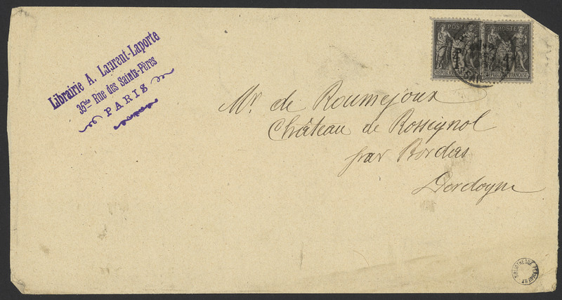 Enveloppe adressée par un libraire à l'adresse d'A[natole] de Rouméjoux