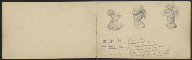 Trois femmes portant des chapeaux, plus notes manuscrites.