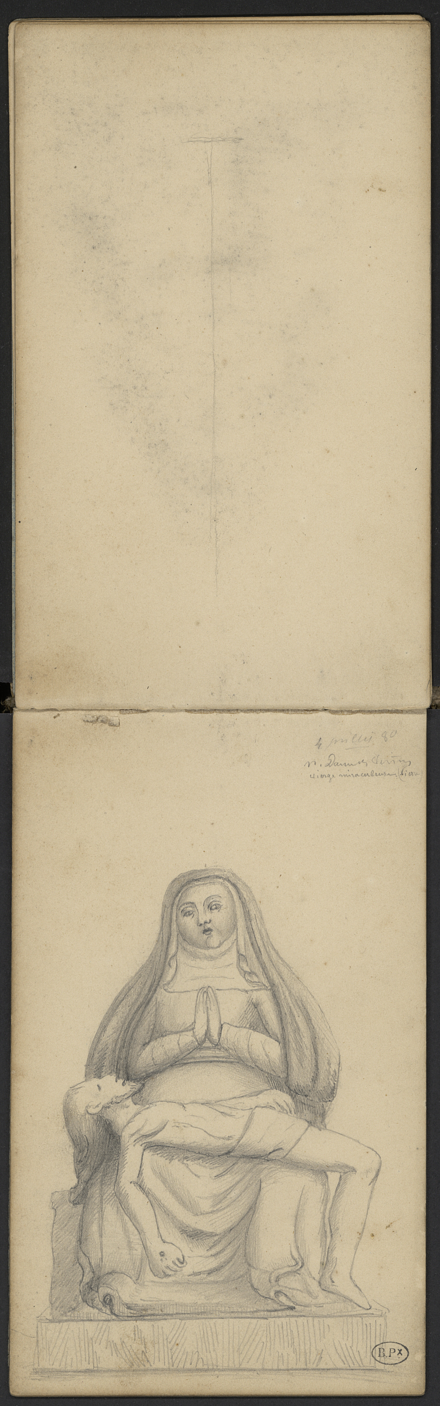 Vierge miraculeuse. Pietà en pierre.