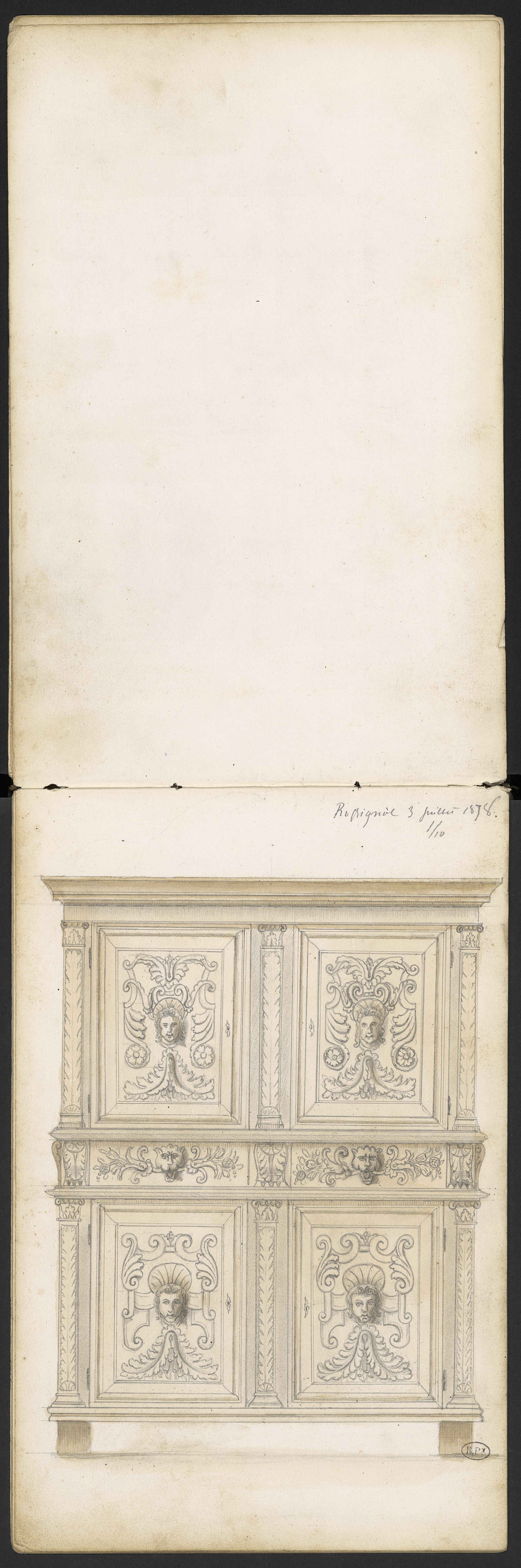 Un buffet à deux corps au château de Rossignol . Ornementation à pilastres feuille ....panneaux à têtes de saint avec rinceaux et feuilles d'acanthe. Tiroirs à poignée tête de fauve et rinceaux.