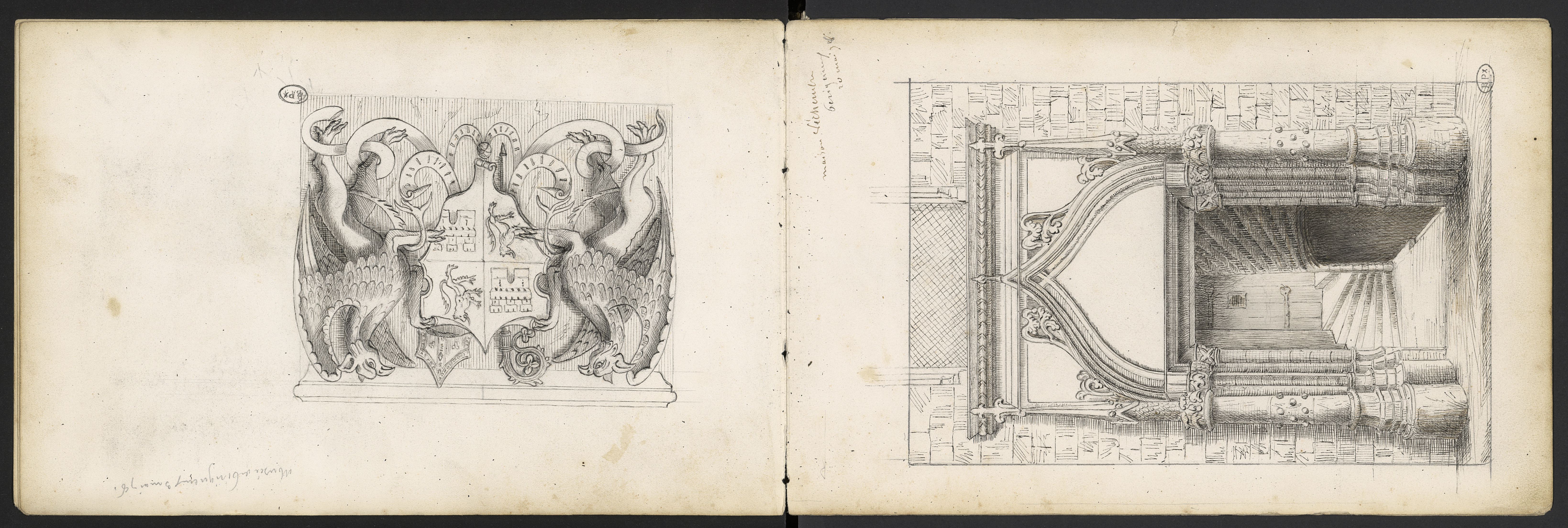 Page précédente,des armoiries au Musée de Périgueux. Portail dit du Presbytère de St-Etienne. Armes de la famille de Castelnau . Evêque de Castelnau.