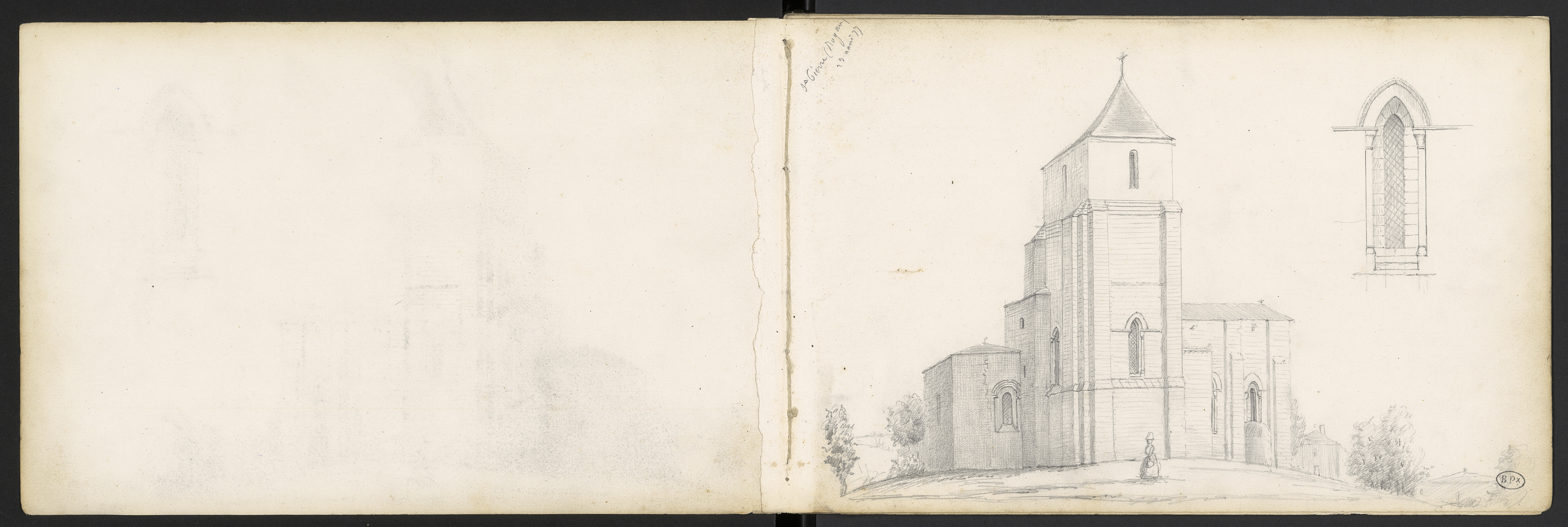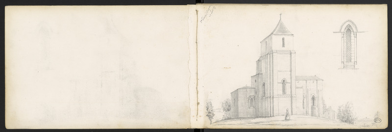 Croquis de détail d'une baie avec deux colonnes engagées dans