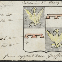 Lasteyrie du Saillant (de) Marquis : Écartelé : aux 1 et 4, de sable, à l'aigle d'or ; aux 2 et 3, d'argent, au lambel de gueules. (Limousin)