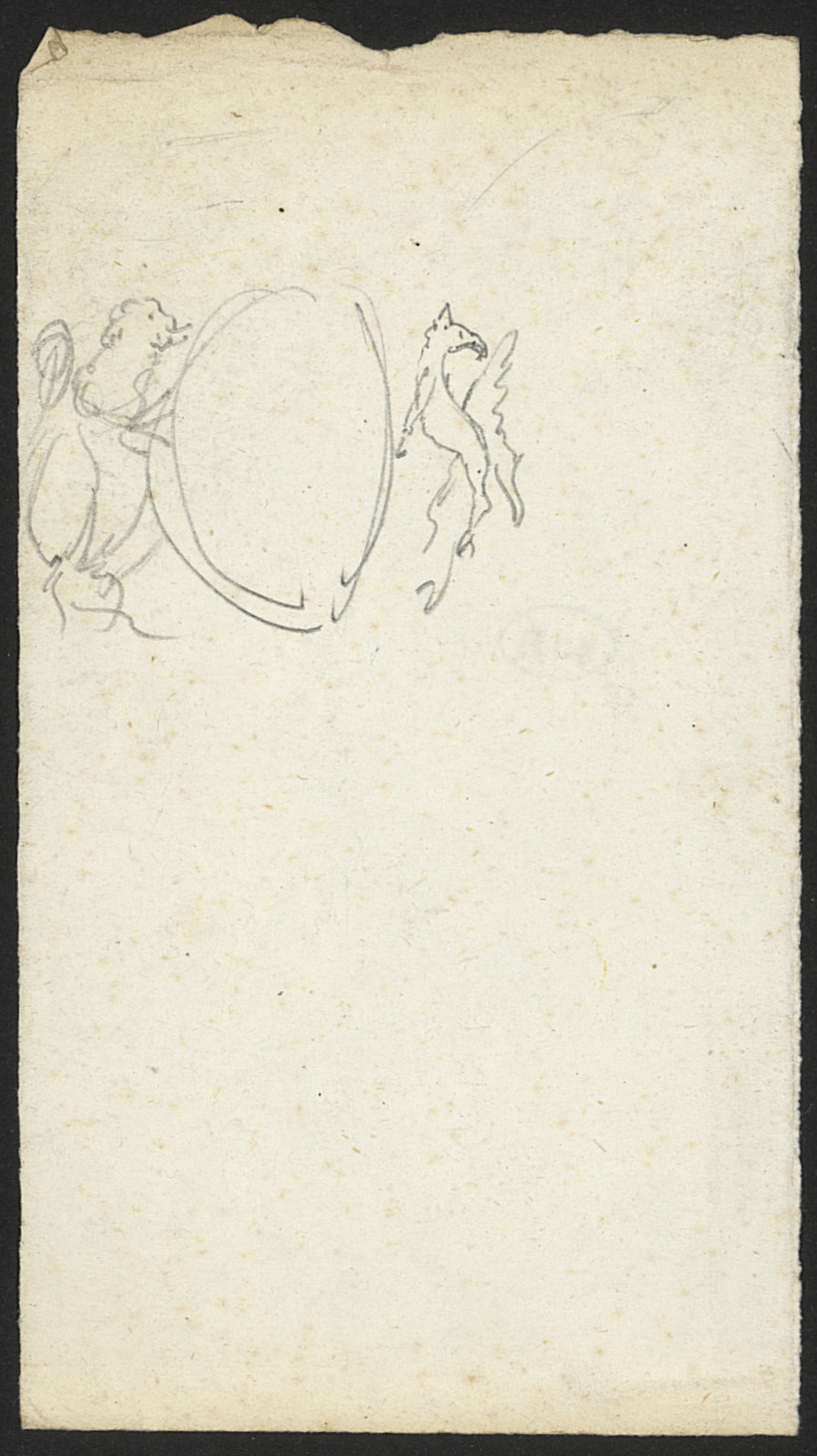 Cadre héraldique soutenu par un animal indéfini et un griffon opposé.