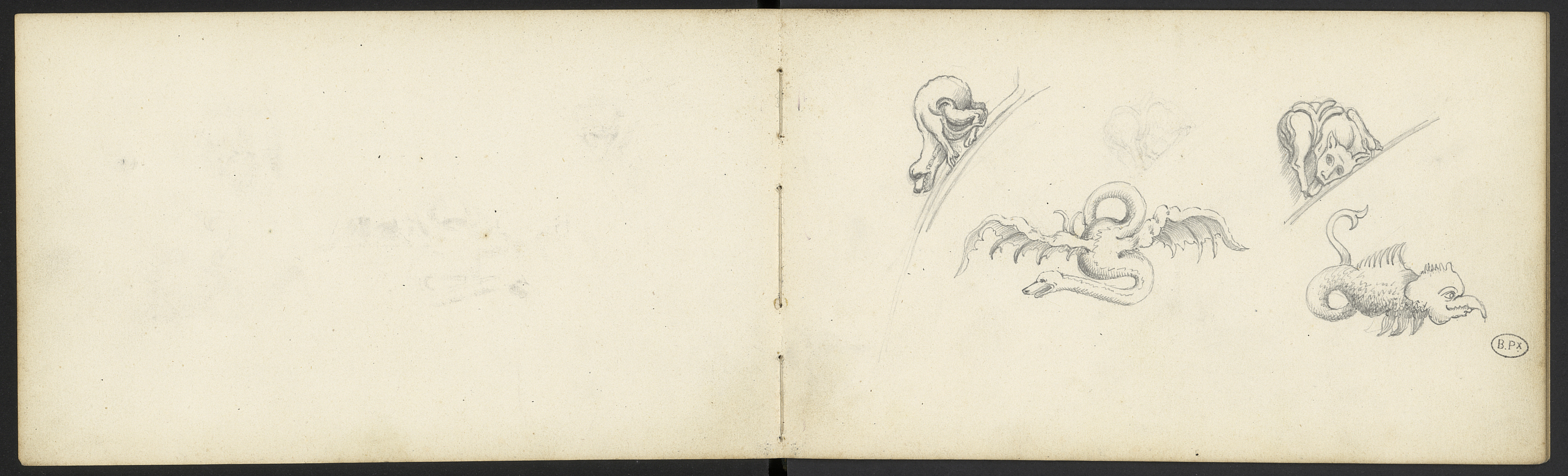 Divers croquis, bestiaire fabuleux