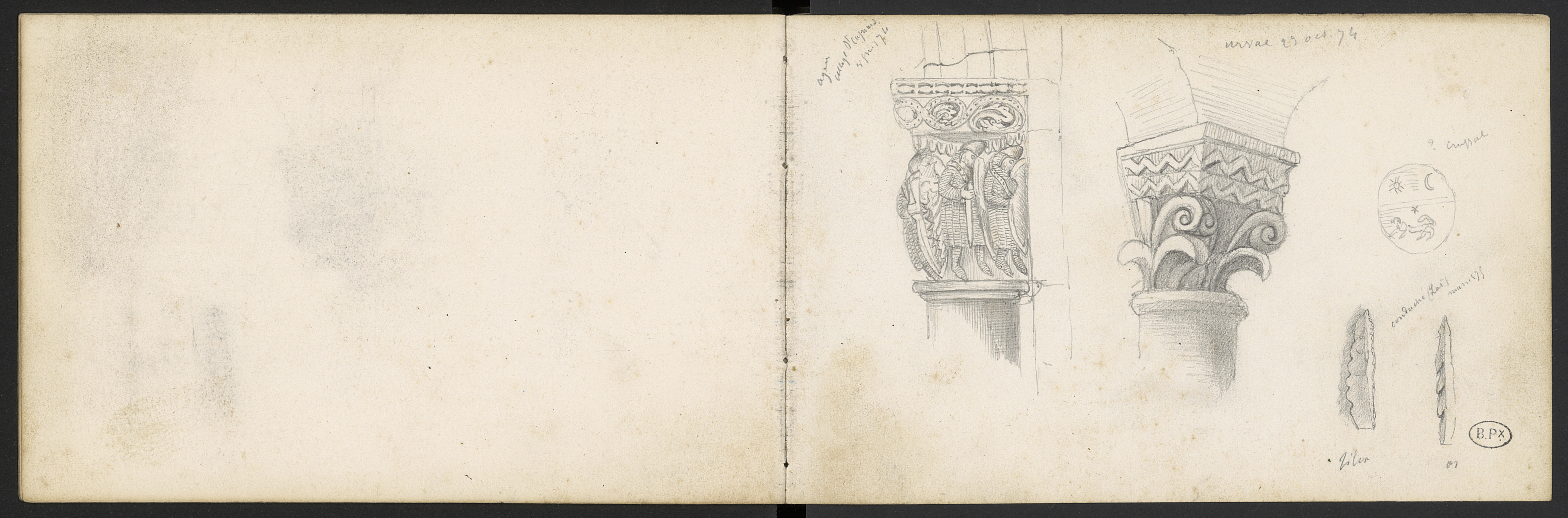 Chapiteaux romans de St-Caprais d'Agen et d'Urval, et une pointe de flèche préhistorique