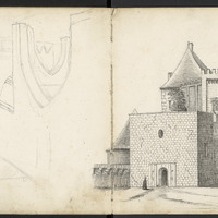 Page précédente un dessin préparatoire sur les arcades à Monpazier.