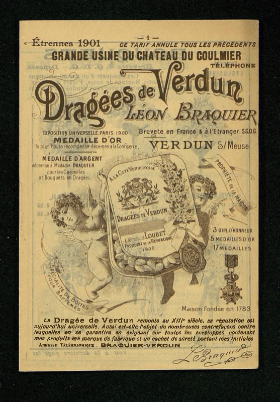 Dragées de Verdun.Grande usine du château du Coulmier 1901