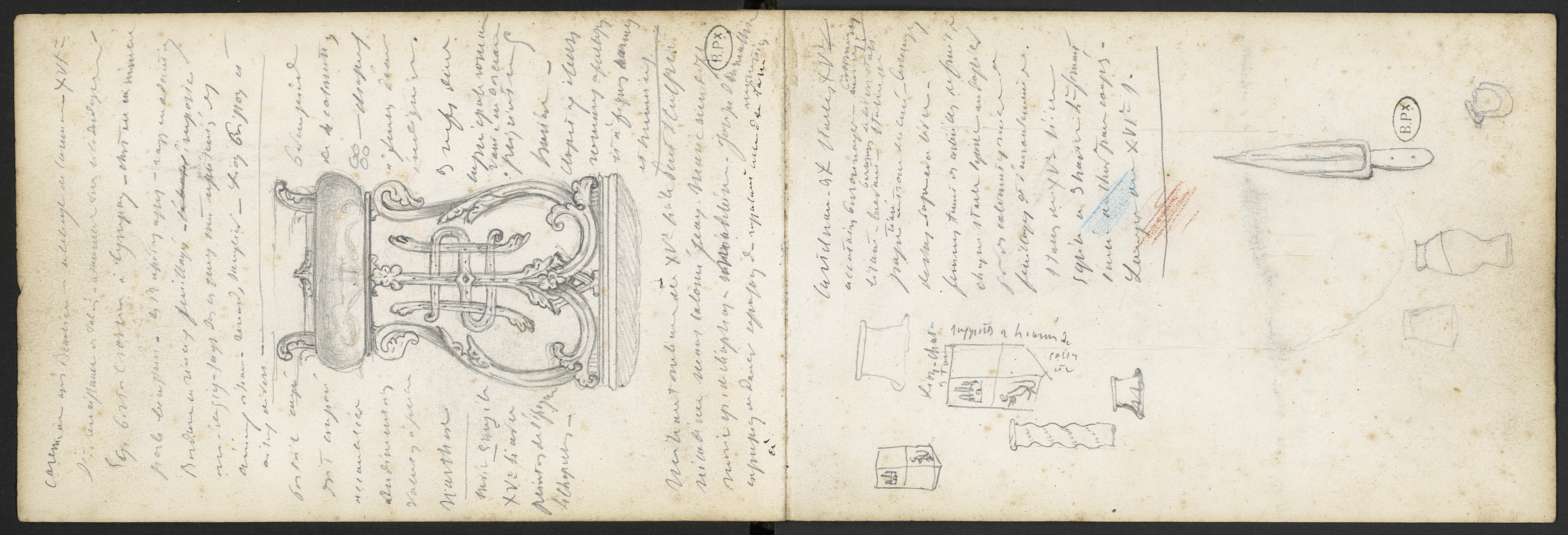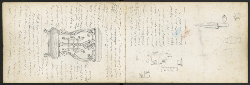 - Page précédente : Notes manuscrites et croquis. Poignard. Colonne torse . Chapiteau.