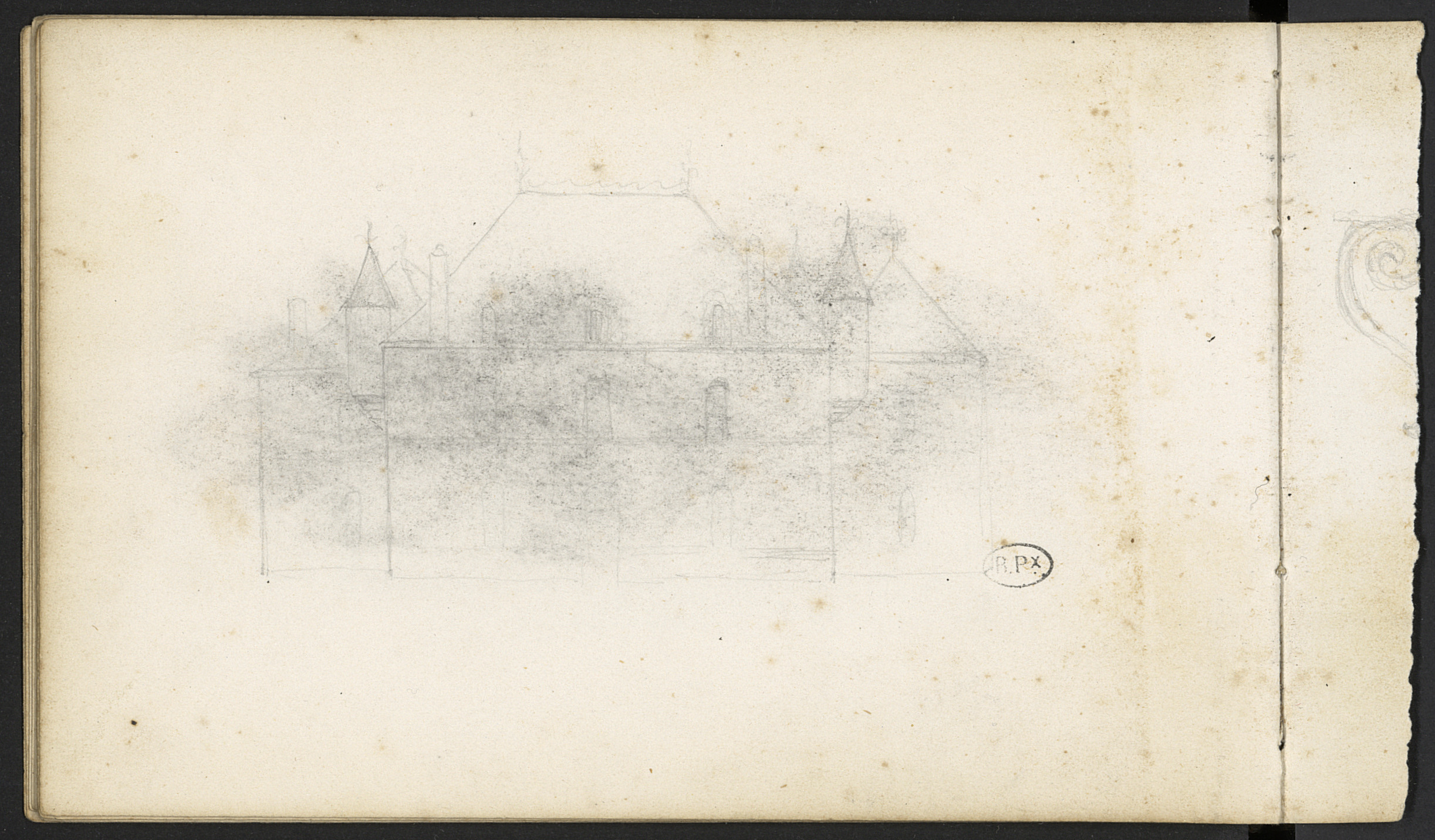Ébauche du château de Chatelard, page suivante déchirée