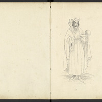 Un roi à la longue barbe est revêtu des attributs du pouvoir : la couronne tréflée, la main de justice et l'orbe.