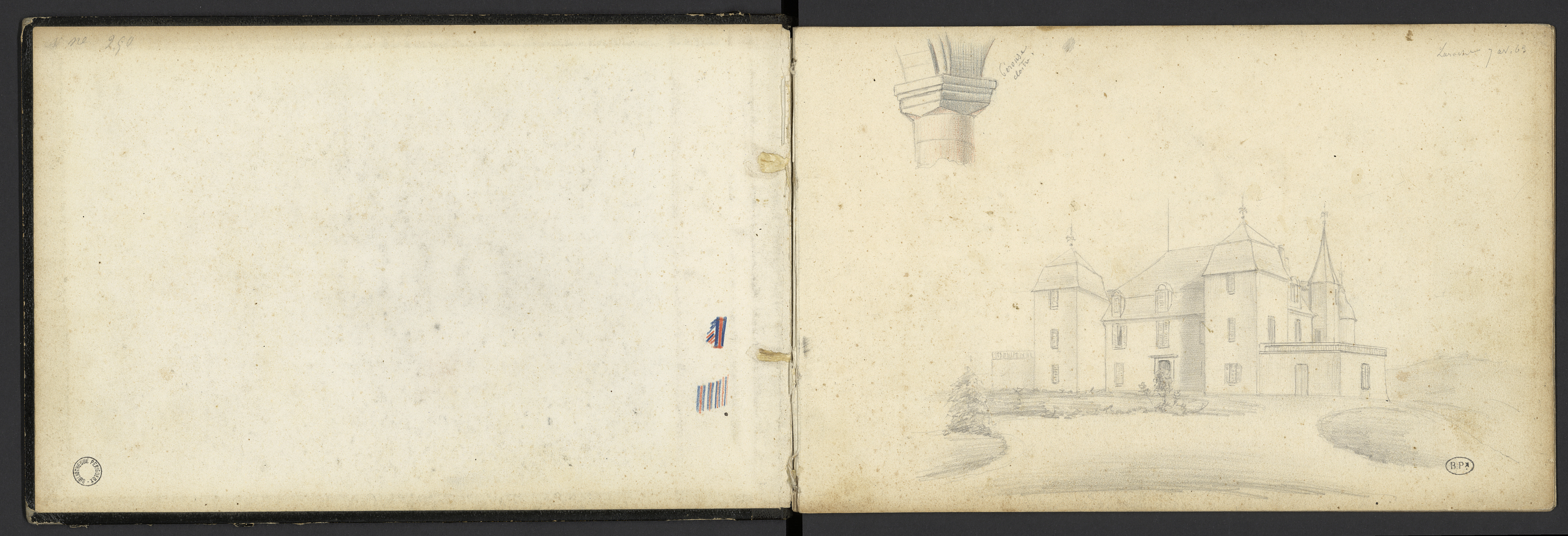 Croquis de détail de chapiteau et colonne romane de [ l'abbaye cistercienne de ] Pérouse [auj. Peyrouse].