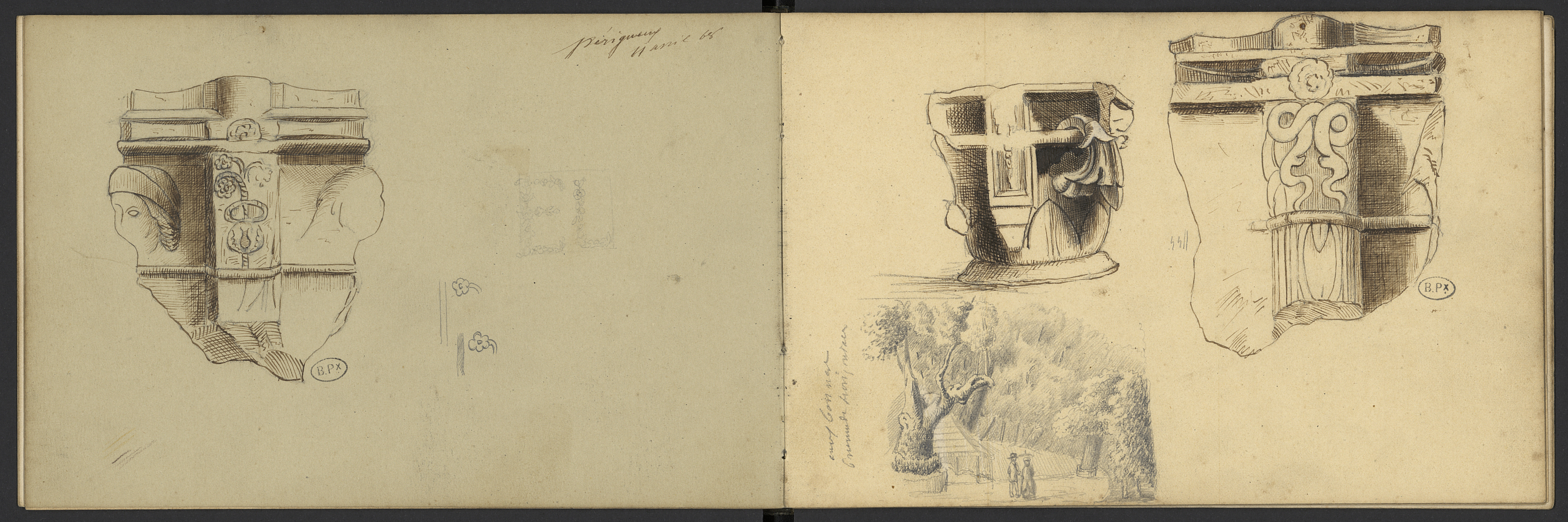 - Dessins divers, dont des chapiteaux