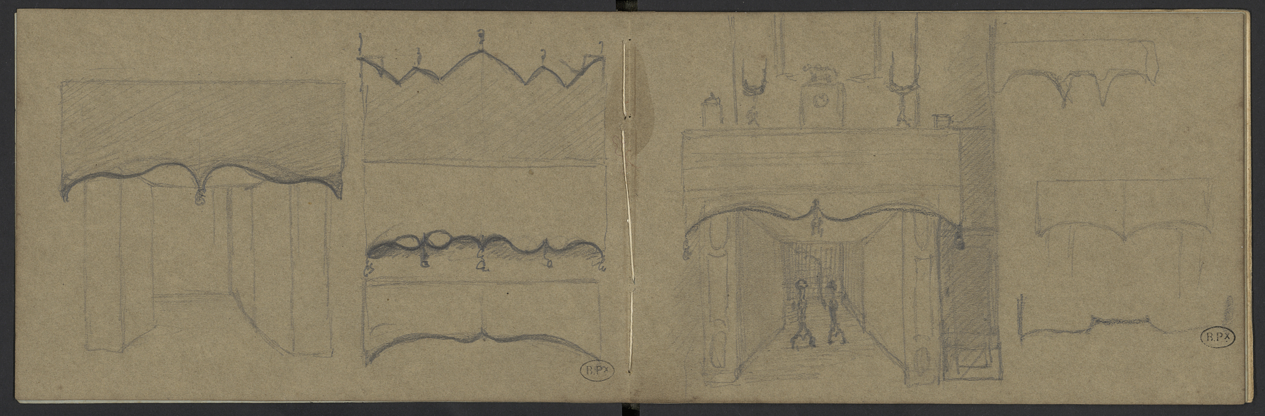 Sur une double page, détails d'un manteau de cheminée dont la localisation est inconnue.