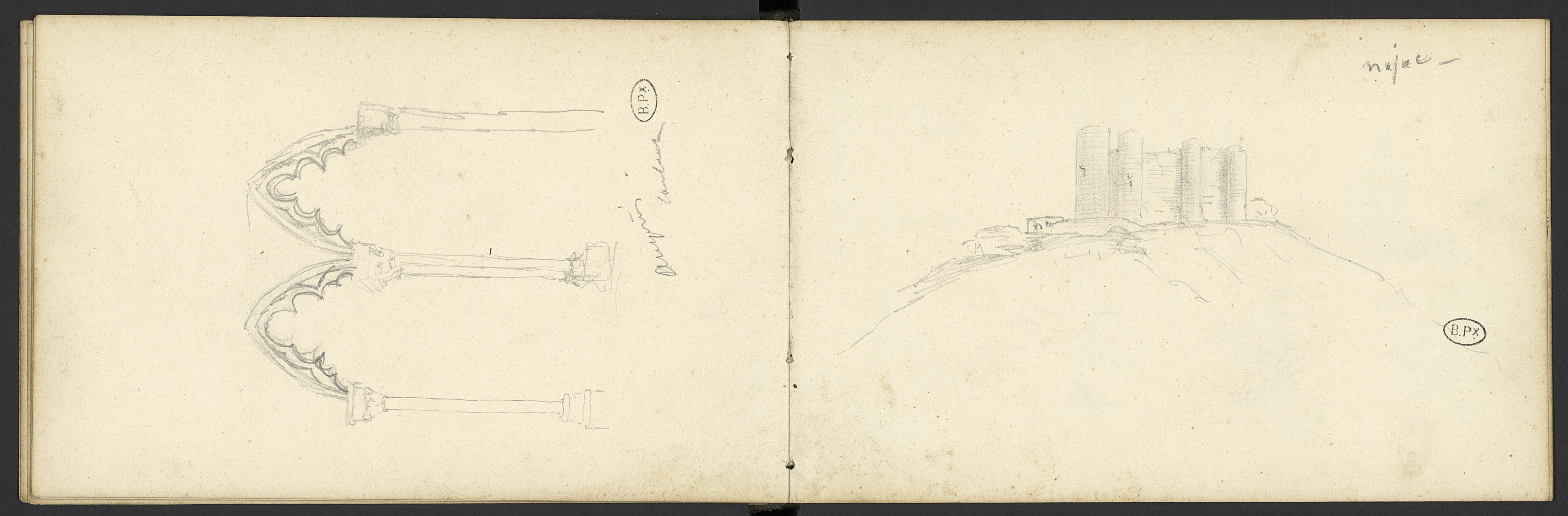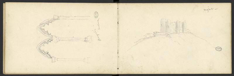 Sur l'autre page une fenêtre, ou colonnes d'un cloître
