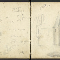 Nombreuses mesures page de gauche, un croquis en plus du dessin page de droite
