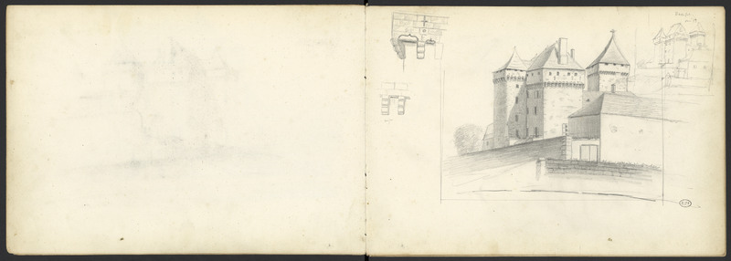 - château de Badefols-d'Ans, avec esquisse préparatoire et détails de machicoulis