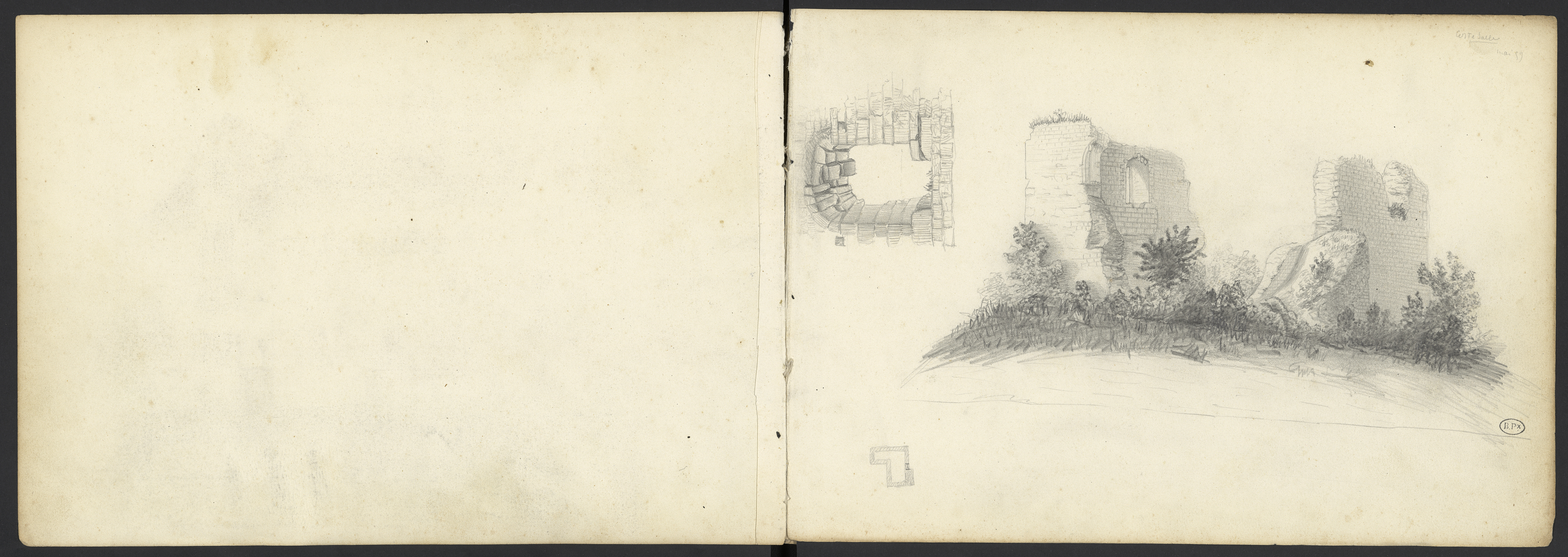 - Ruines du château de Badefols-sur-Dordogne, une fenêtre, un petit plan