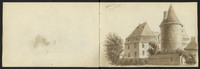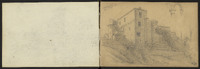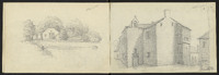 Deux ptits dessins ; l'un représentant Cahors, l'autre un monument antique à Rome