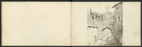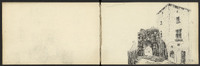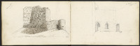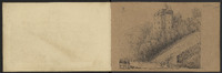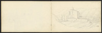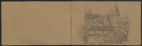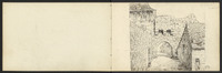 Sur les deux pages, vues du château de Castelnaud, dont une esquisse, puis l'entrée du château