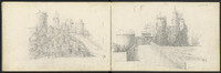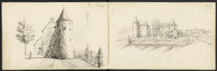 Deux vues différentes du château de Marouatte, sur deux pages