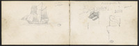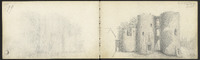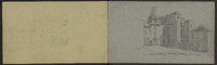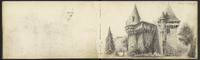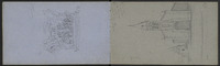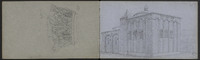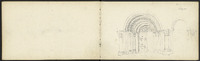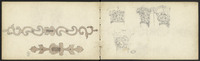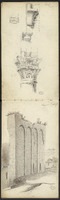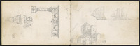 Plusieurs dessins, dont des inscriptions, corniche…