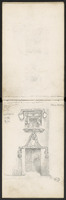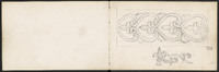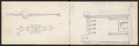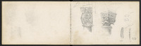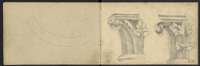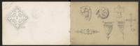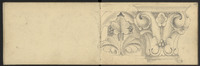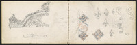 Croquis divers, dont fleurs de lys . Page précédente, un fronton de style Baroque