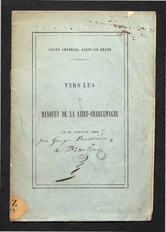 Lycée impérial Louis-le-Grand. Vers lus au banquet de la Saint-Charlemagne, le 31 janvier 1863 : Présent et passé