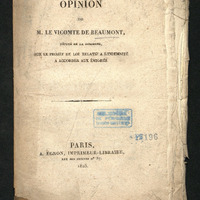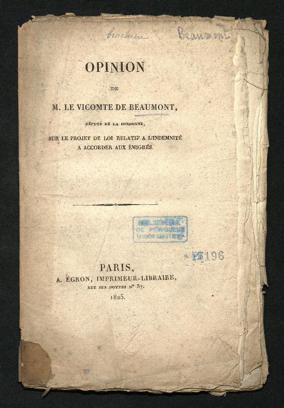Opinion de M. le vicomte de Beaumont,député se la Dordogne, sur le projet de loi relatif à l'indemnité à accorder aux émigrés. (Séance du 18 février 1825.)