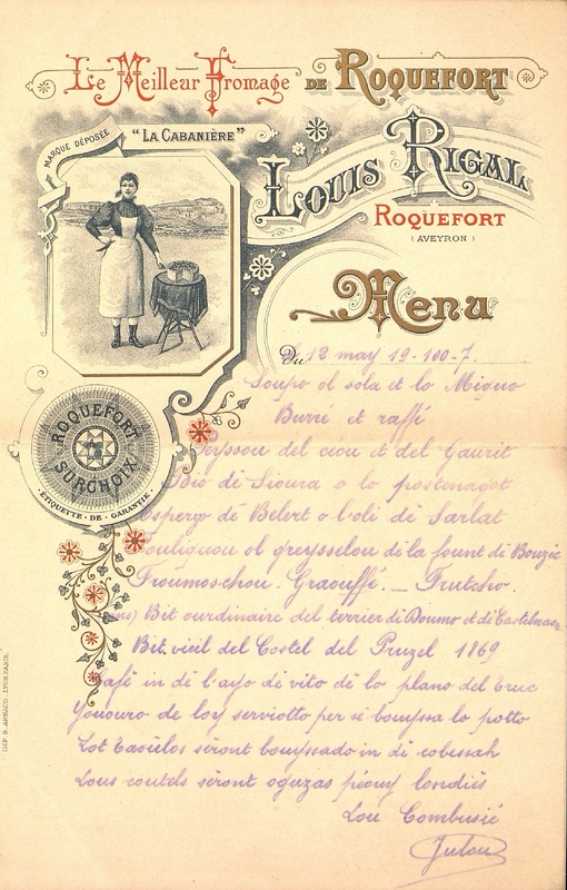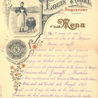 Menu publicitaire illustré Roquefort, marque Louis Rigal.