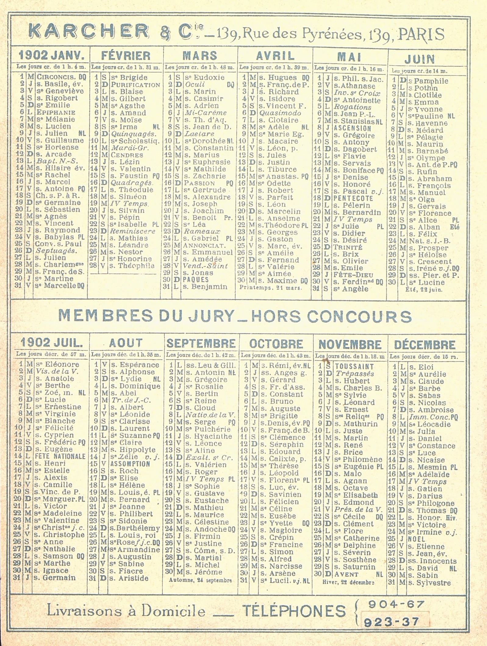 Dépliant publicitaire pour la Bière Karcher, avec un calendrier de l'année 1902 à l'intérieur.