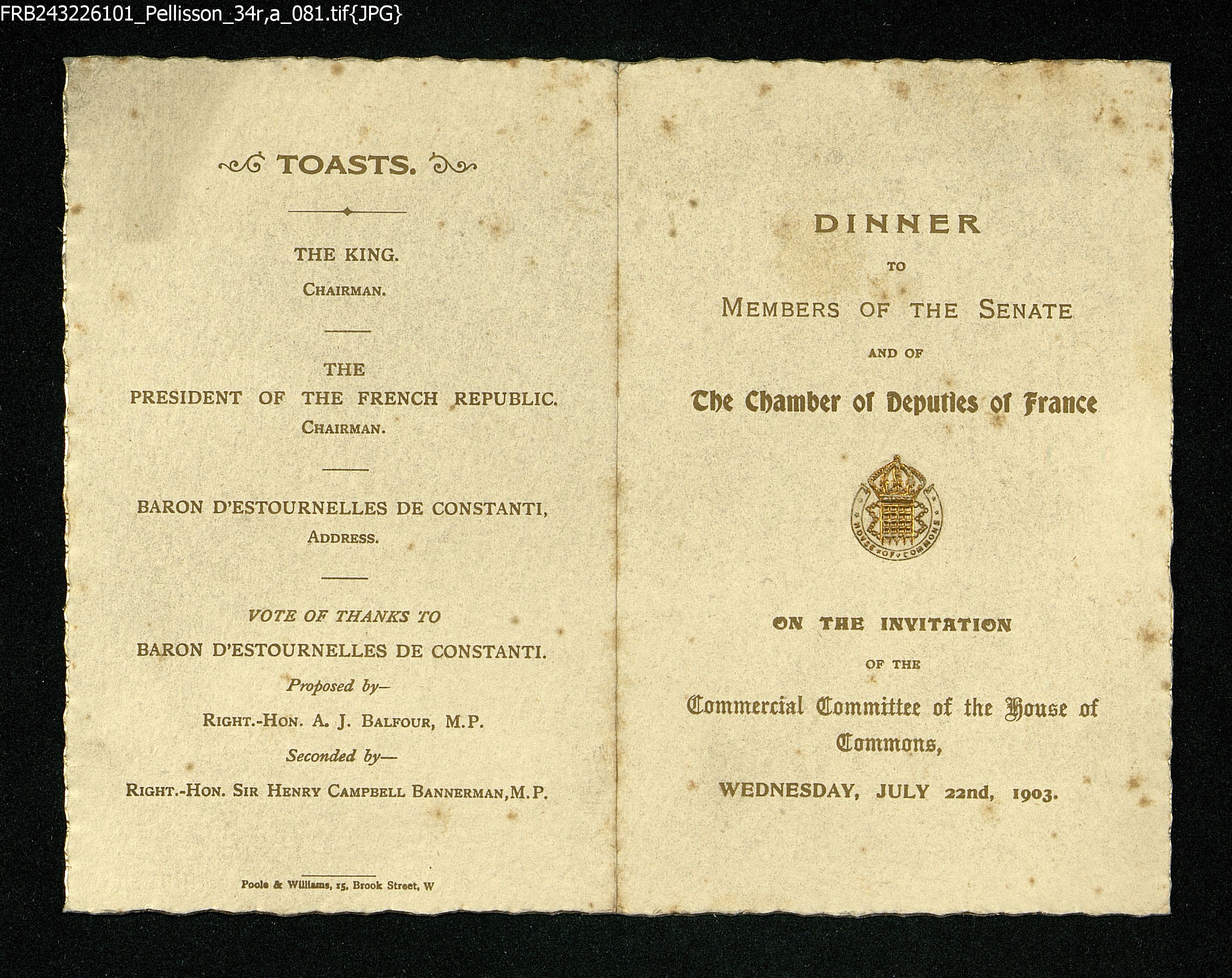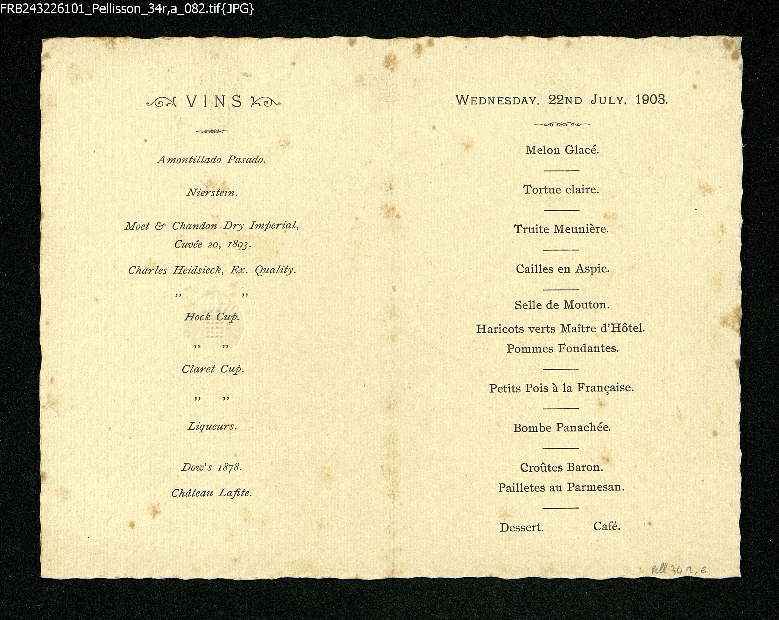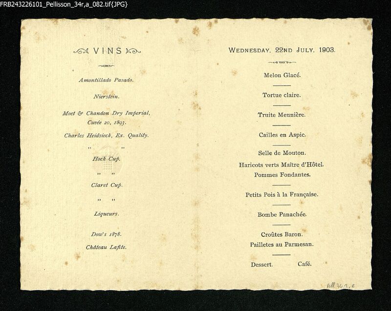 Menu du mercredi 22 juillet 1903