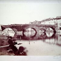 Tirage albuminé du Pont de Tournepiche vue de la rive gauche de l'Isle, rue des Prés.