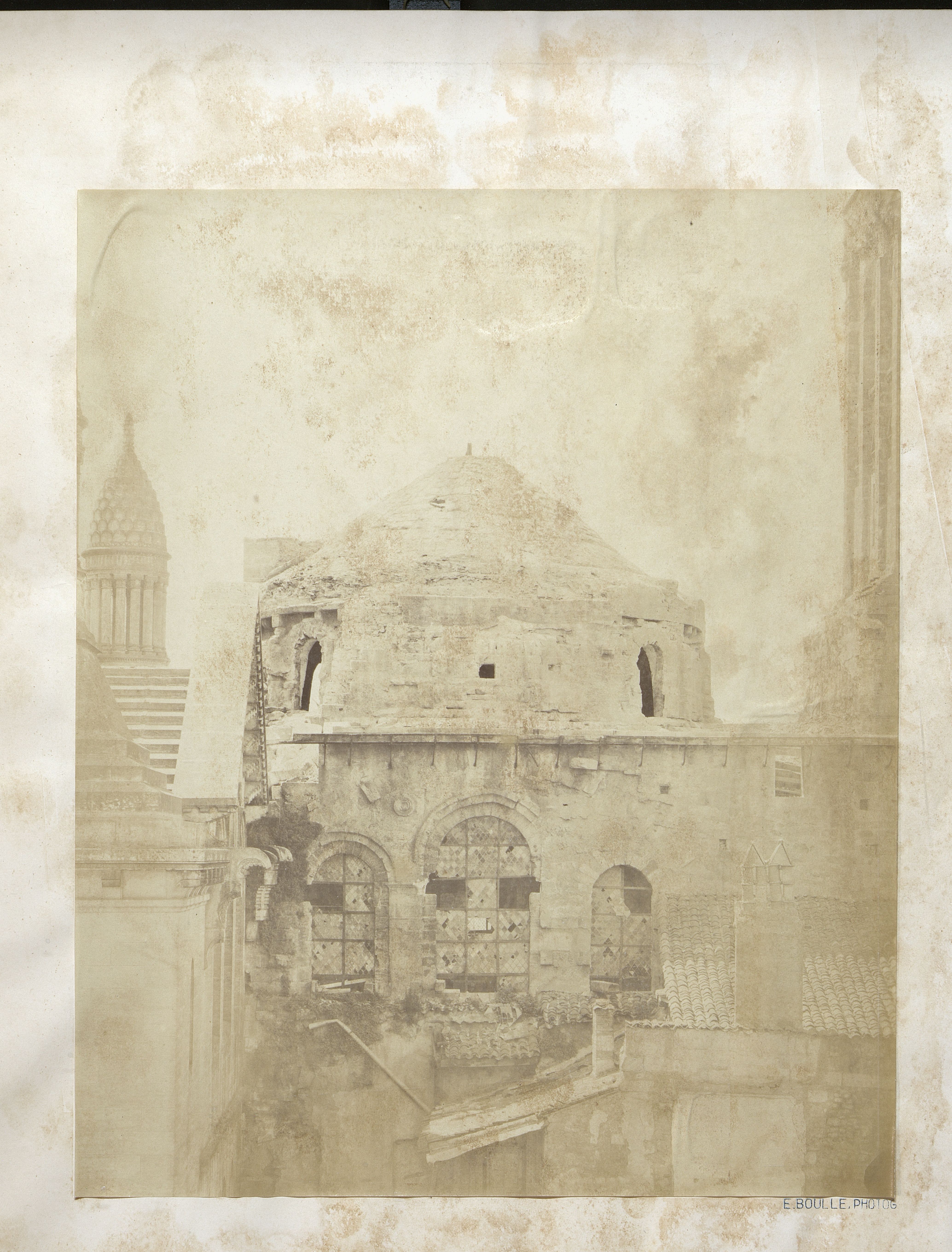 - Tirage albuminé représentant les travaux de restaurations de la Cathédrale Saint-Front (coupole ouest) dans la deuxième-moitié du XIXe siècle.